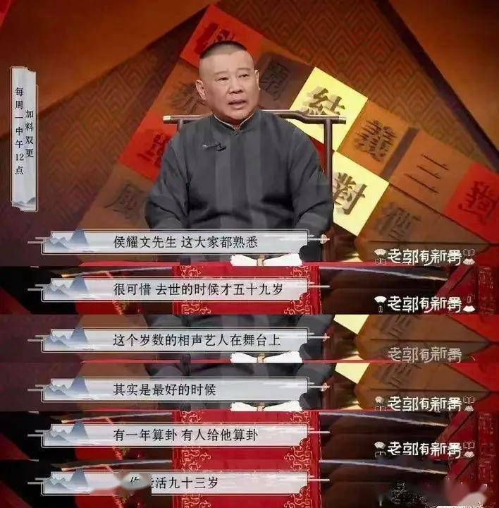 这段充满温情的师徒情,却格外短暂。侯耀文去世得太早,没能亲眼看到郭德纲后来的成就,没能看到那些他珍藏的曲艺素材,在郭德纲的手中绽放光芒,这也成了郭德纲心中永远的遗憾