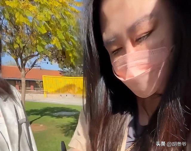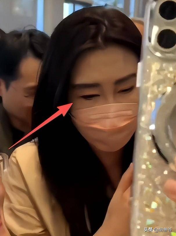 照片里的她戴着口罩只露出双眼,左眼浮肿明显,眼尾的形态和当年让观众一眼沦陷的灵动桃花眼判若两人。