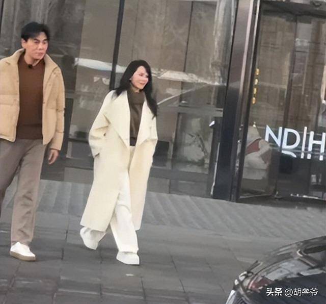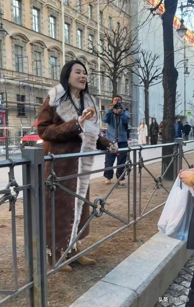 58岁的伊能静穿了一件长款毛绒大衣,在莫斯科的街头走起来气场十足。