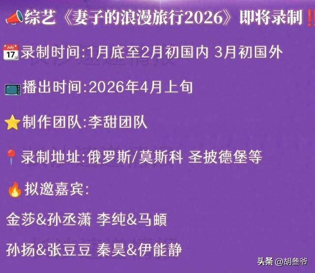最近短视频平台都被《妻子的浪漫旅行2026》的路透刷屏了,这季节目去了俄罗斯录制,阵容挺有看点的。