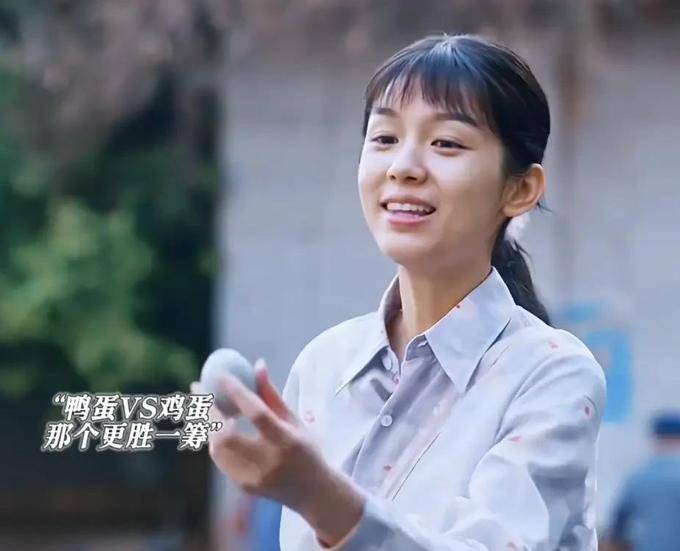 有一场她蹲在路边卖鸭蛋的戏,皮肤白皙、手指纤细,还化着精致妆容,连旁边饰演大妈的群演都显得格外真实。网友调侃:这鸭蛋怕不是从爱马仕专柜拿来的吧?