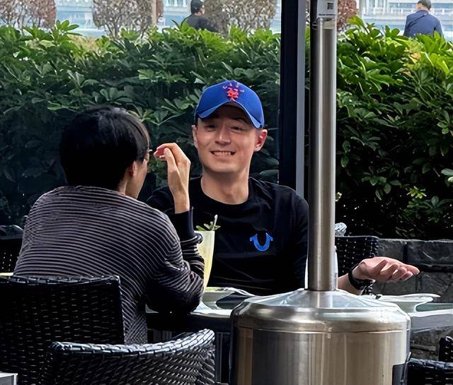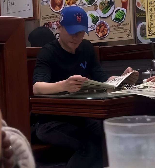 坐在餐桌旁的他,完全不在意旁人的目光,饭后自然地剔牙,动作随意又放松,没有半分偶像包袱。