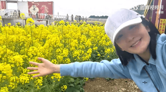 谢娜分享的视频中最亮眼的是那一片黄灿灿的油菜花,小火车穿行在油菜花地里,看着感觉超级棒。金色的花海一望无际,微风拂过,花浪翻涌,谢娜和爸妈坐在复古的小火车里感受着春天的气息。在爸妈面前的她可以完全放松身心的做女儿,说话声音都变的奶呼呼的,超级可爱。