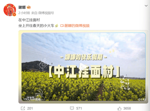 3月17日,谢娜在个人社交平台分享了一则动态,是自己在家乡中江游玩的小视频。谢娜配文称:在中江挂面村,坐上开往春天的小火车。就这小语气都能感受到谢娜的开心,也是谁回了家会不