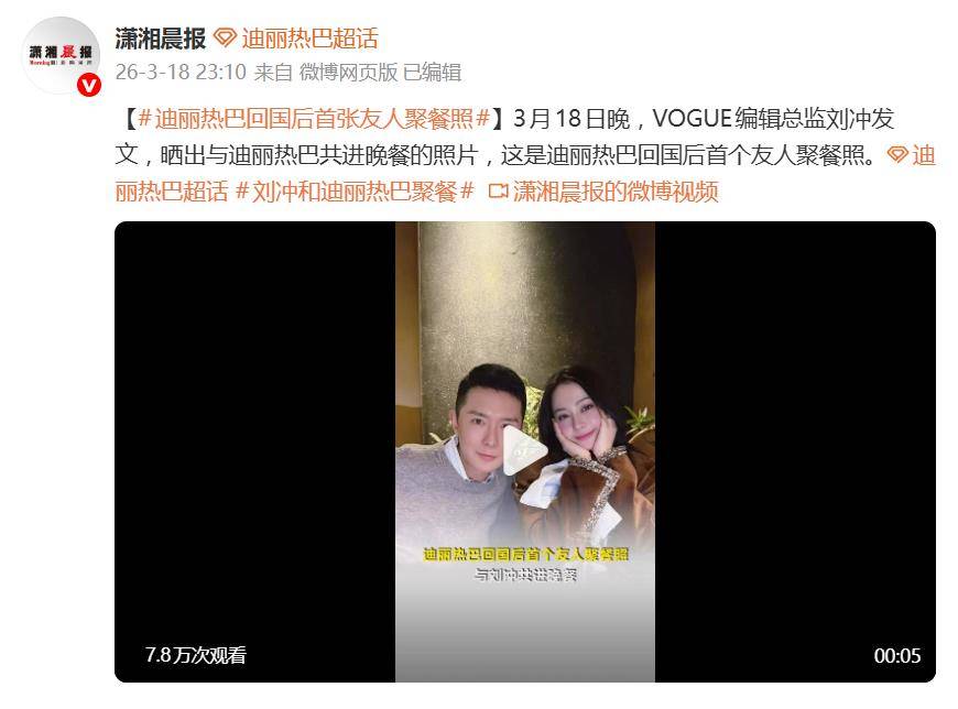 据3月18日晚报道,VOGUE中国版编辑总监刘冲的一则动态,瞬间点燃了网络。他晒出与迪丽热巴共进晚餐的合照,而这张看似私人的聚会照片,之所以引发全网“解码”,只因这是
