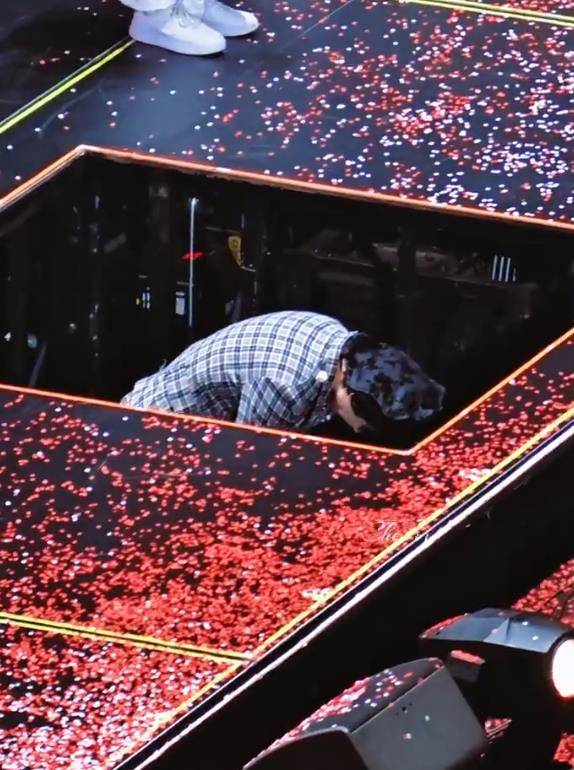 在这个流量迭代快过翻书的时代,艺人的告别往往沦为流水线作业:程式化的挥手、飞吻,镜头一切便匆匆离场,奔赴下一个名利场。刘宇宁却偏要将这个瞬间无限拉长、凝固。他选择不抬头、不直身,任由自己高大的身影蜷缩在舞台边缘,与渐暗的灯光融为一体。这并非卑微,而是一种主动的“放低”,低到足以倾听每一片灯海的潮汐,感知每一次欢呼里的炽热,承接每一道目光中的期待。