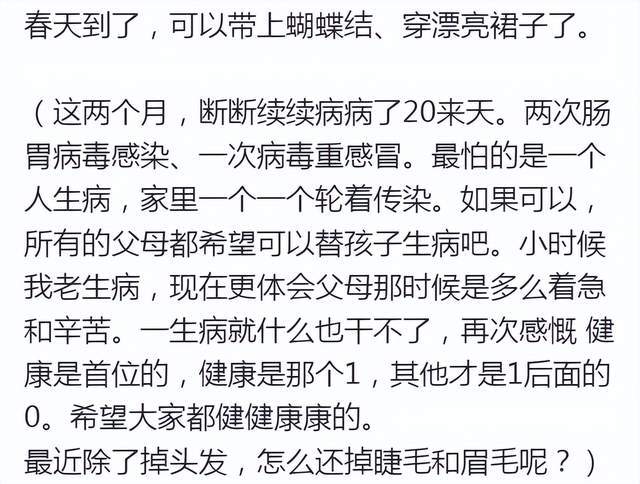 除了美味可口的饭菜外,何穗身前还放着一碗药,而在配文中何穗透露称这两个月病了三次,身材本就纤瘦的她生完孩子体质似乎变得很差。不仅爱生病,何穗还透露说现在脱发也很严重,不仅掉头发,就连睫毛眉毛都掉。