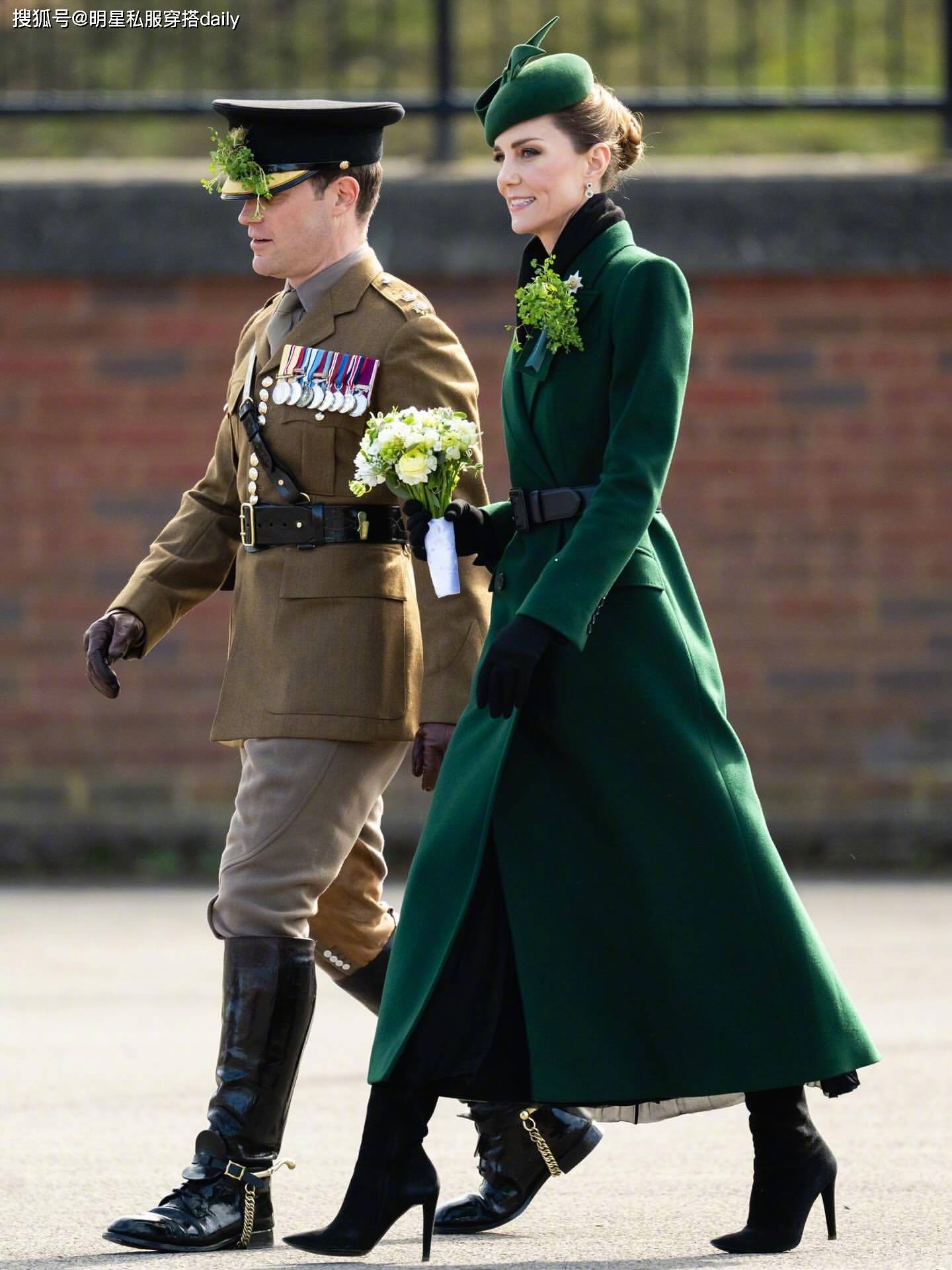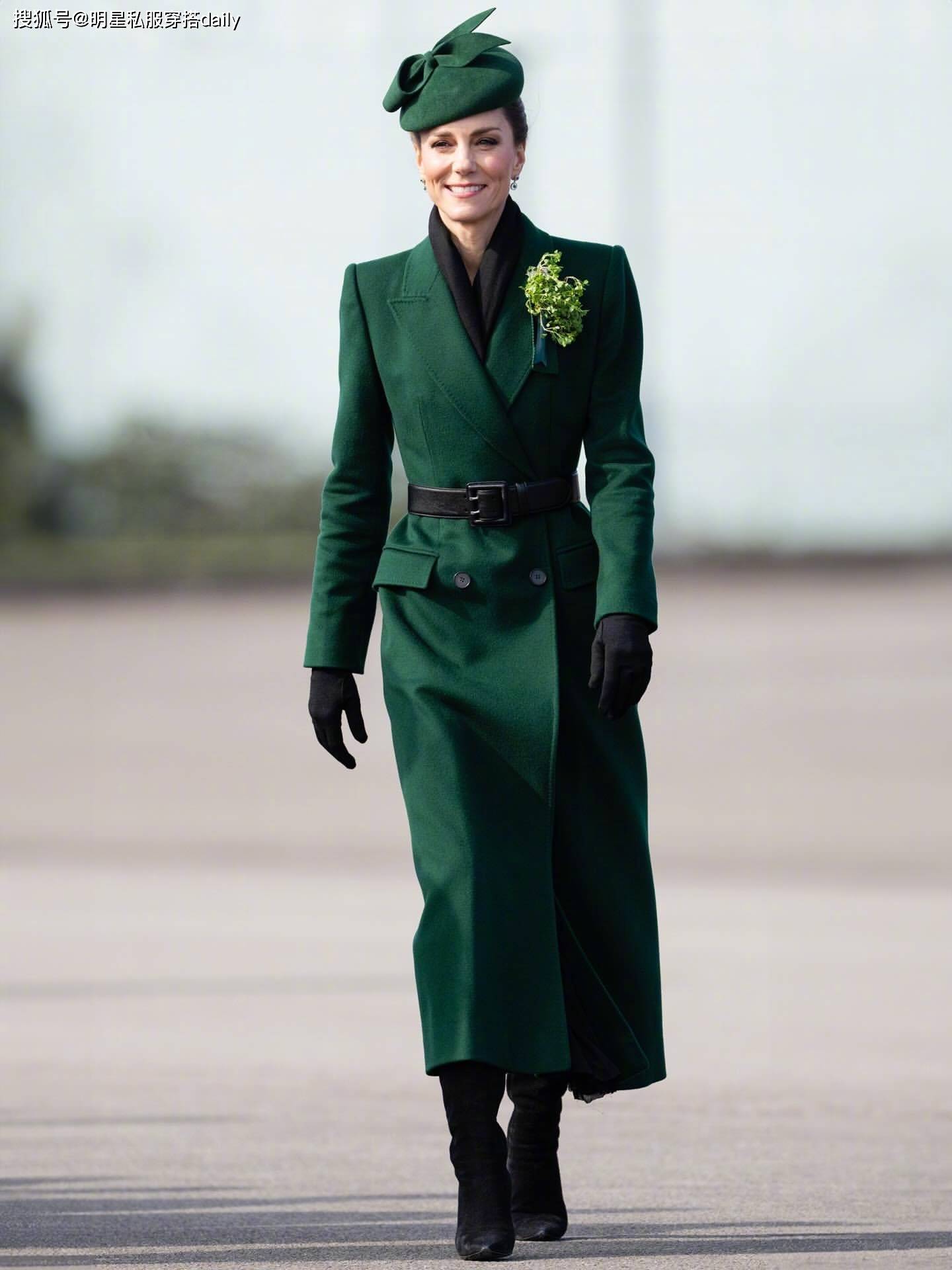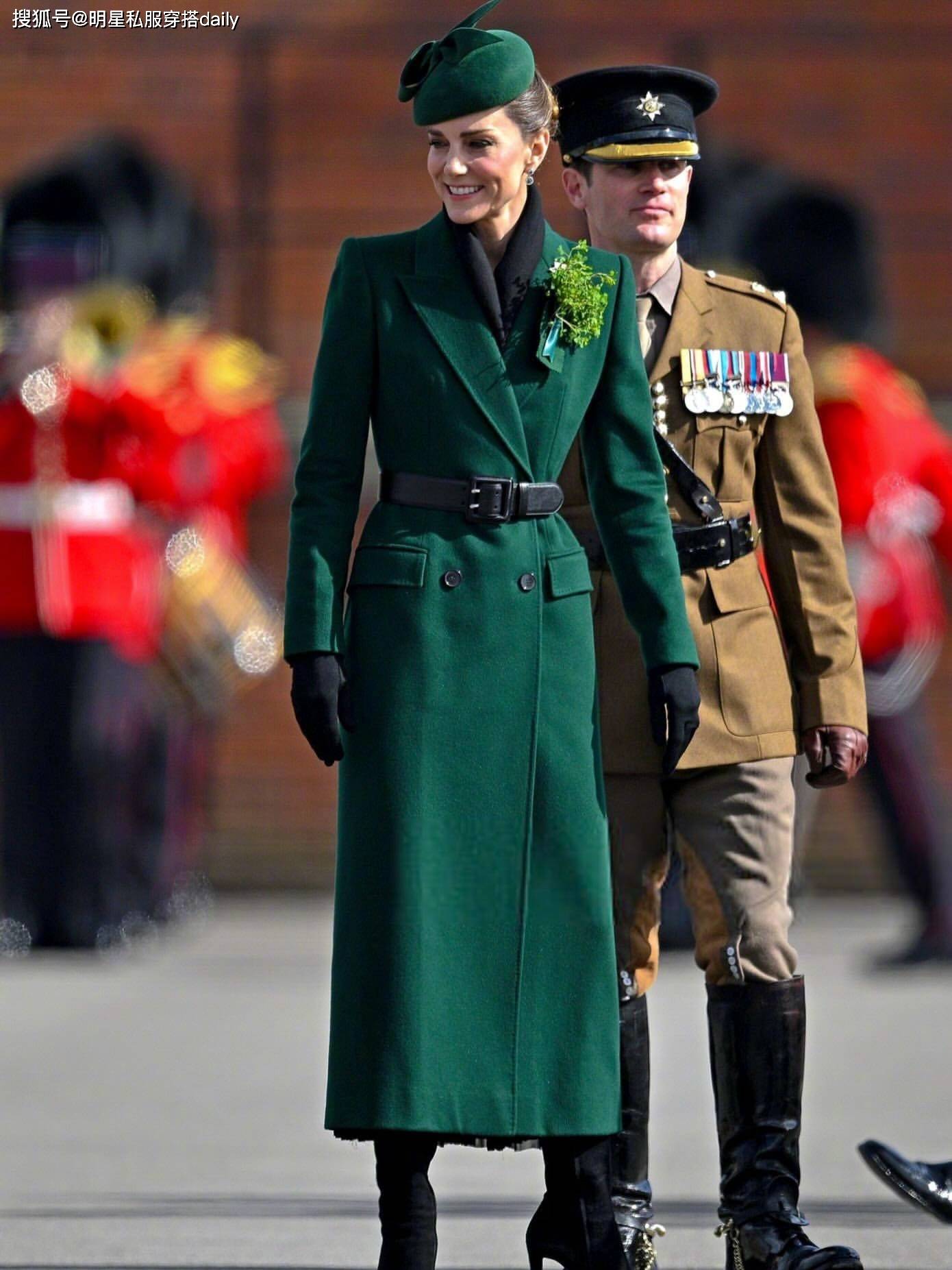 凯特王妃作为英国王室的门面当担,她恢复健康后状态越来越好!这不,最近她出席了爱尔兰卫队阅兵式!一袭皇家绿大衣,英姿飒爽,一整个颜值大回春!绿色双排扣大衣+黑色麂皮长筒靴,好帅气