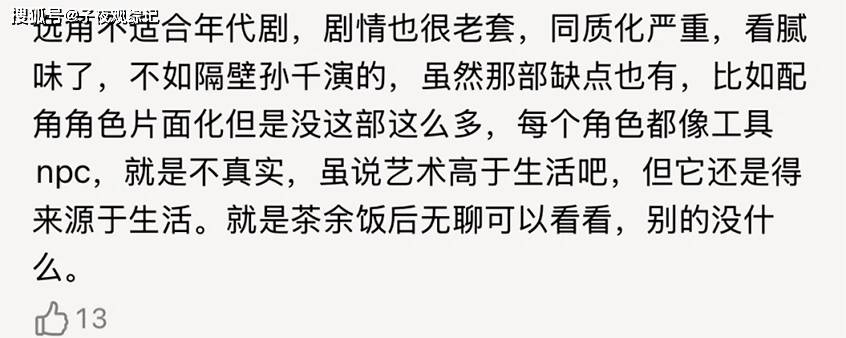 我在琢磨,这部剧能引发很多讨论,从根本上来说,是因为它碰到了我们这一辈人的集体焦虑,夏晓兰穿越前是背锅侠职场人,这不就是每天在公司小心翼翼的我们,她穿越后的逆袭,与其说是幻想,还不如说是一种要是再重新来一次的心理补偿,从这个层面来讲,年代穿越剧不只是怀旧,更是对当下生活的温和反抗。
