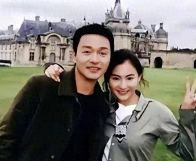 照片当中张国荣很自然地轻轻揽住张柏芝的腰,张柏芝俏皮地比划出V字的手势,两个人笑容都很灿烂。