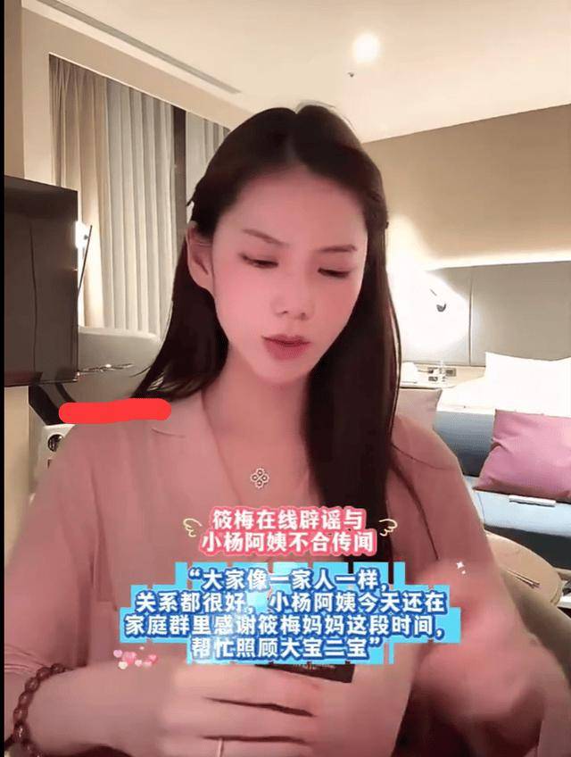 3月16日,马筱梅似乎是被网络上这些乱七八糟的新闻给弄头疼了,于是不得不在直播间中澄清了,说小杨阿姨就是正常的休假,平日里都没什么假期,这段时间也是抓紧休息下,而且也辟谣了和小杨阿姨不和的传闻,马筱梅还说小杨阿姨在家庭群里的,还亲自感谢了自己母亲在这段时间里帮忙照顾大宝和二宝。