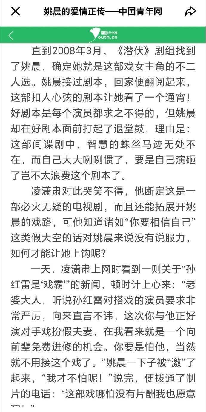 不过3月16日,一个博主扒出了一个关于姚晨和凌潇肃的罕见猛料,据当年的新闻爆料,当时姚晨是拒绝出演《潜伏》的,结果却被当时的老公凌潇肃给用巧计给逼上去了,到底是怎么一回事呢?