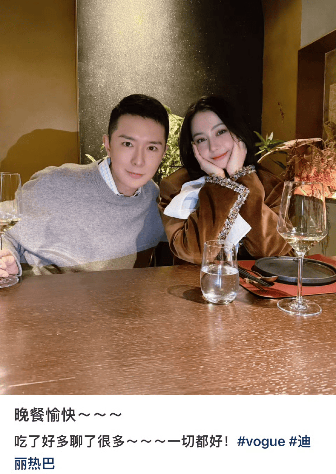 2026年3月18日晚,时尚圈和娱乐圈突然被一张合照炸出了“快乐水花”——VOGUE中国版主编刘冲在社交平台晒出与迪丽热巴的晚餐照,配文“吃了好多、聊