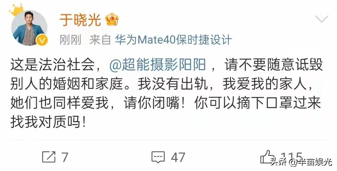 没想到于晓光和另外一个女人竟然传出了暧昧不清的消息,