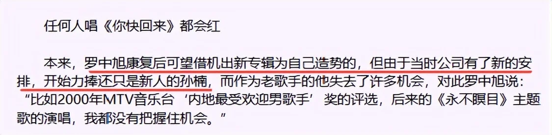 但因为罗中旭意外遭遇车祸,公司便将这首歌给了还是新人的孙楠。