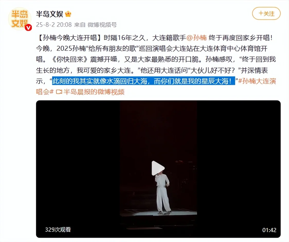 2025年8月回乡举办演唱会时,还特意用大连话与观众唠嗑。