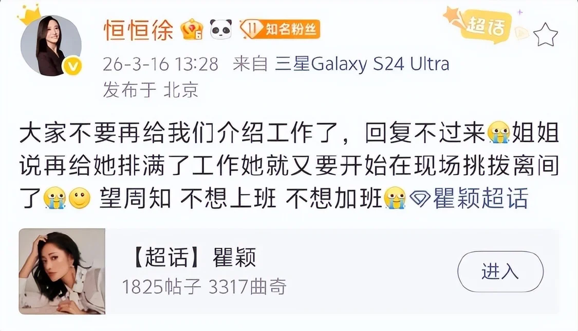 这种“拒绝工作”的反差感,让瞿颖的“活人感”持续升温。