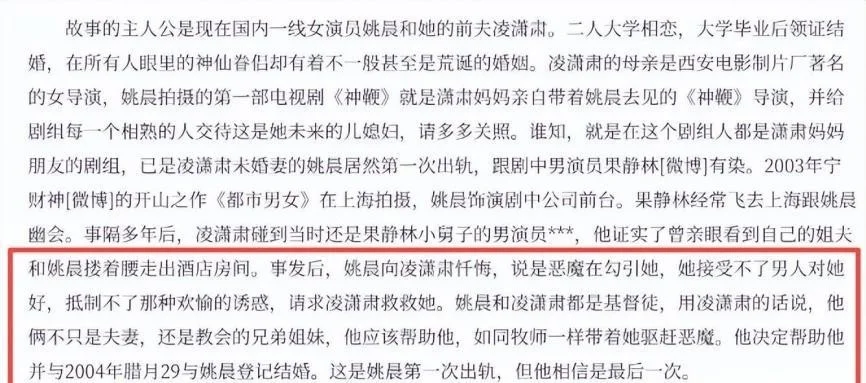 网友扒出,早在十二年前,就有人爆料,说姚晨和曹郁婚姻出状况了。