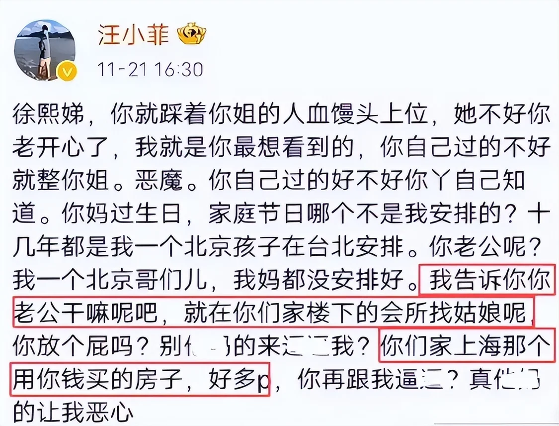 汪小菲也曾爆料,直指许雅钧在上海育有私生子。