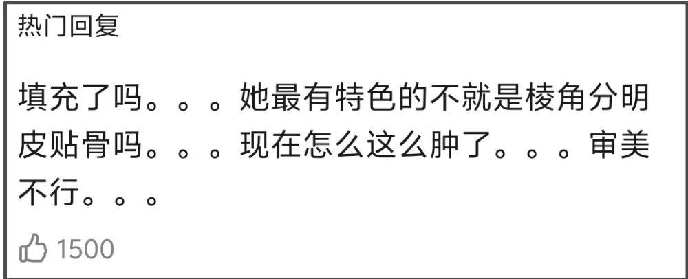章子怡的脸之所以频繁被吐槽,一方面是因为章子怡实打实长胖了不少,据说是为了新戏拍摄做准备,一方面是因为章子怡到底是失去了骨相优势,皮贴骨的精致小脸不见了,取而代之的大了一圈的满月脸,仿佛皮肤下出现了不该有的组织,是脂肪还是什么,咱也不敢说、咱也不敢问。