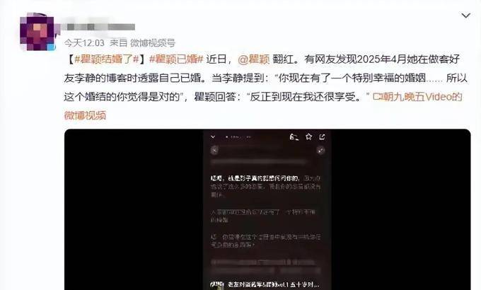 实 际上,早在2025年4月瞿颖 作为嘉宾参加李静 的节目 时, 她已经 不自觉地 分享了一些 有关 的消息。 当时,李静 毫不拐弯抹角地 提出了一个问 题, 她说 :“ 如果你 现在拥有一段 特别幸福 和美满的婚姻,那么你认为这 场婚 姻的 成立是 完全正确的”。