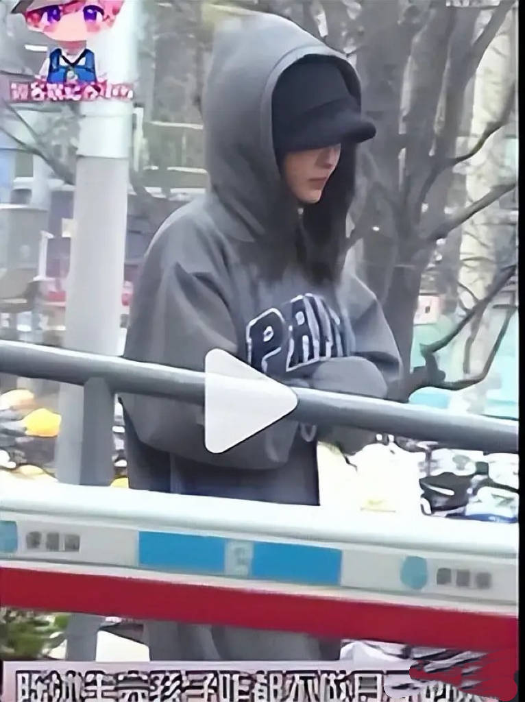 不过陈冰倒是包裹的挺严实的,长款卫衣、针织线帽,手里拎一个小小的帆布包,看起来她身材很苗条,步伐也很轻盈,完全不像是刚生完娃的模样。