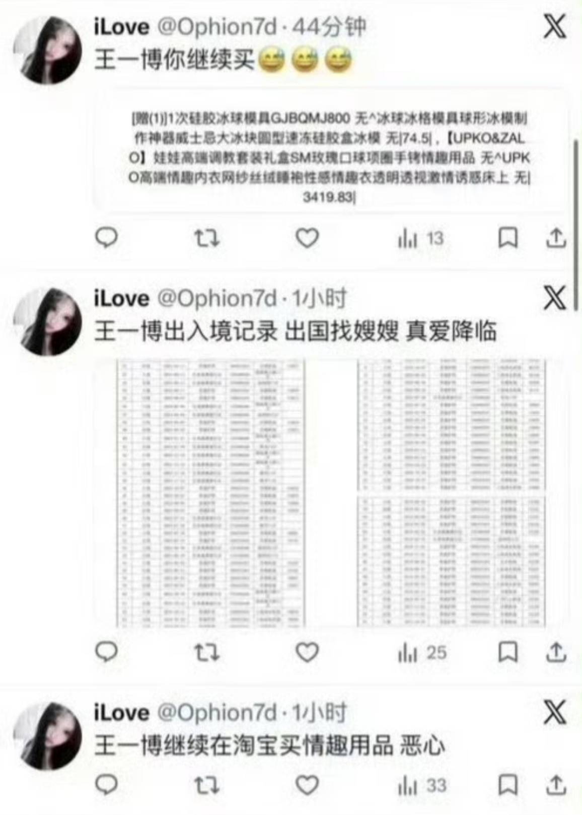 娱乐圈这瓜田真是永不歇业啊!最近X平台上突然冒出一个"疑似王一博私生"的账号,上来就是一顿猛料输出——出入境记录、购买记录全给晒出来了,还提到綦美合买了好多小