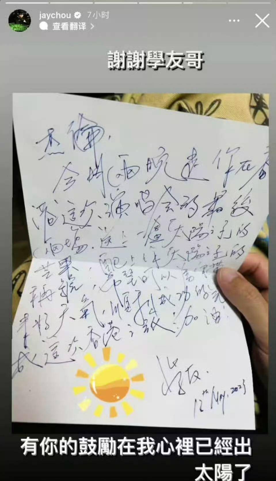 歌神张学友知道后,就送给他一个芒果和一张手写卡片,上面写着“太阳之子”,开玩笑说周杰伦像太阳的儿子一样幸运。