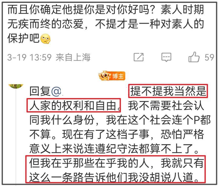 女方发文之后,评论区自然爆满。不少网友表示,胡歌成为明星之后,不提素人时期的恋爱,对于素人女友来说,也是一种保护。女方则表示,提不提是胡歌的自由,但自己也只有这一种方式证明自己没有胡说。
