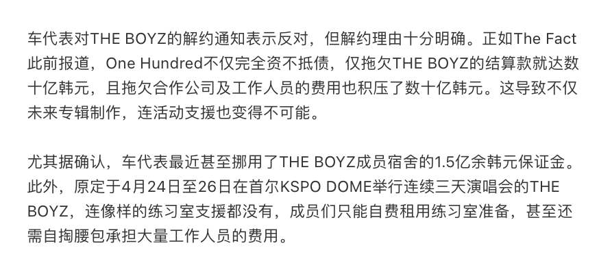至于男团THE BOYZ呢,更是从去年7月开始就再也没发过工资。