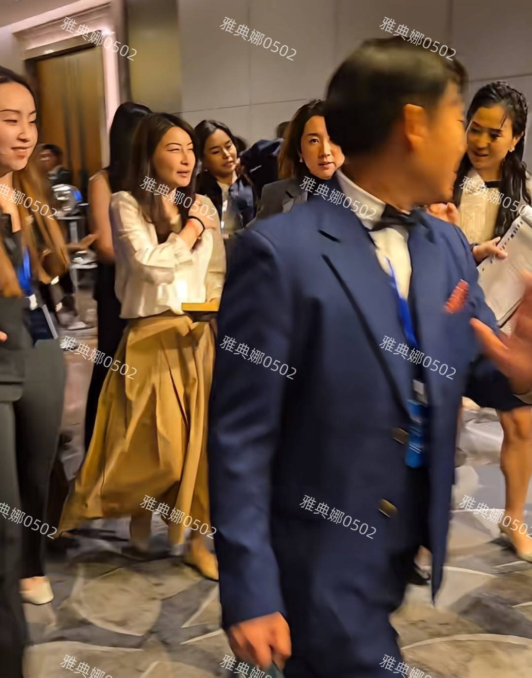 晚宴结束后,郭晶晶的人气如预期般高涨,许多校友纷纷围上前请求合影。尽管她行程紧凑,急着离开,但仍满心欢喜地与大家一一拍照。她的五官饱满立体,即使只是淡妆示人,也依旧光彩动人,举手投足间大方得体,散发着独特的气质与魅力。