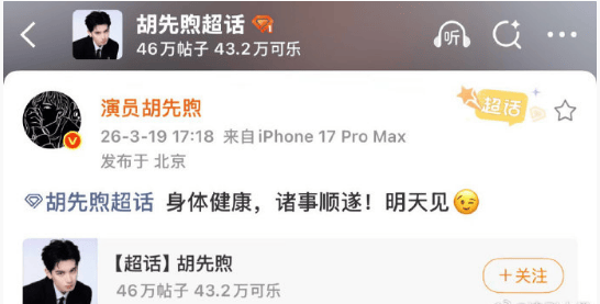 随即,他删除该内容,并重新发文:"身体健康,诸事顺遂!明天见",语气迅速恢复平和。