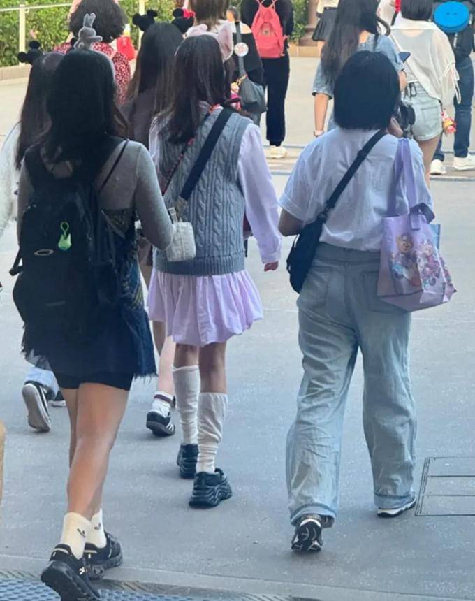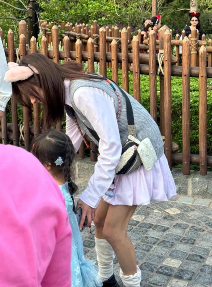 于3月19日的下午时分,存在网友在香港迪士尼乐园碰到陈意涵带着小姑娘游乐玩耍。就在当天呀,她身着粉色百褶短裙搭配灰色针织背心,脚上是白色堆堆袜加上黑色厚底鞋,并且呢,头上还