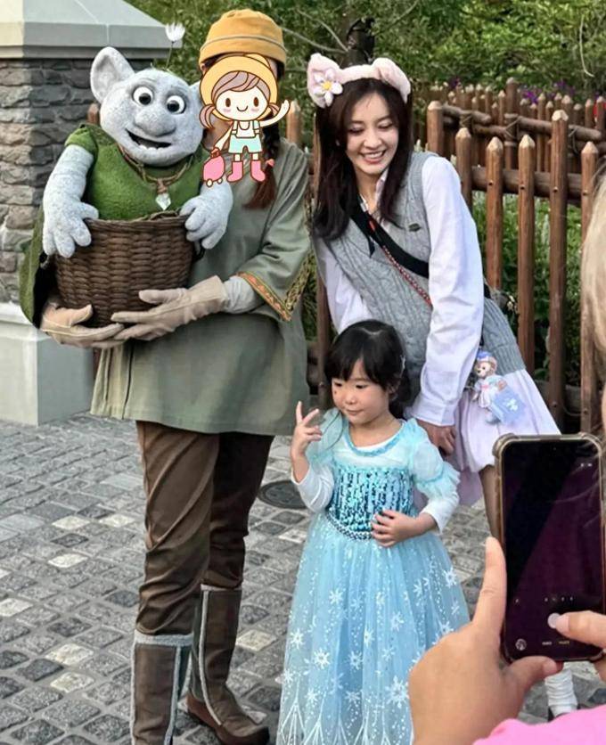 站在陈意涵前 面的那个小女孩,身 穿与蓝色公主 相似的服 饰, 她是她 的第二 个孩子的女儿。 当 这名小女孩被路人 包围 并开始拍照 时, 她展现出 了一丝羞 涩,稍微 倾斜身体 ,摆出 了一个剪刀手的姿势, 这个动作既 活泼又显得 很乖巧。