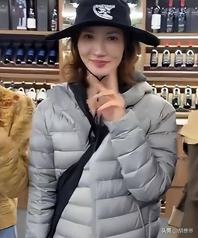 照片里的她戴着黑色大帽子,一头小卷发,穿着黑色上衣配灰色羽绒服,比着剪刀手,脸小得让人羡慕。