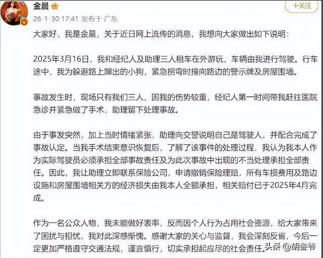 这则通报就像一颗定心丸,直接为金晨洗清了主要责任。