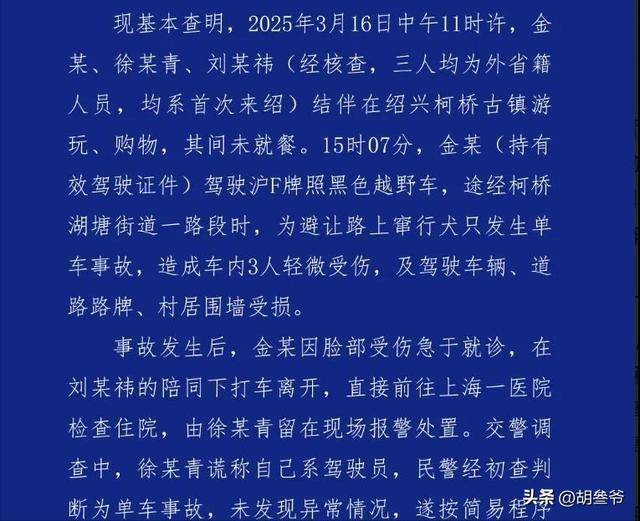 2025年3月,绍兴的一条道路上,金晨驾驶的车辆发生单车事故。