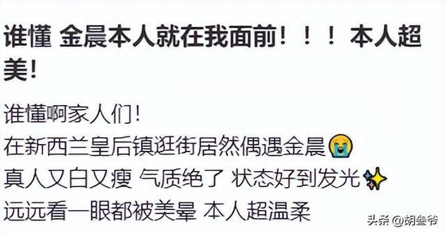 3月19日金晨在新西兰的现身,成了近期的热门话题,网友晒出的照片里,她的状态更是成了大家讨论的焦点。