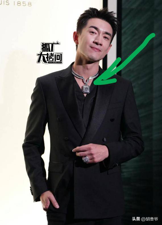 可唯一的槽点就是他脖子上戴的项链,尺寸实在是太大了,夸张的造型和他简约的西装形成了强烈的反差。