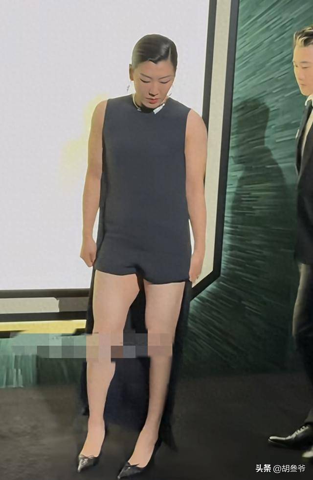 尤其是深V的设计,本是为了凸显女性魅力,可她的光板身材完全撑不起来,一点女人味都没有。