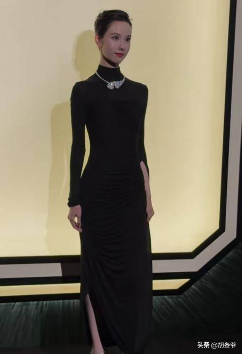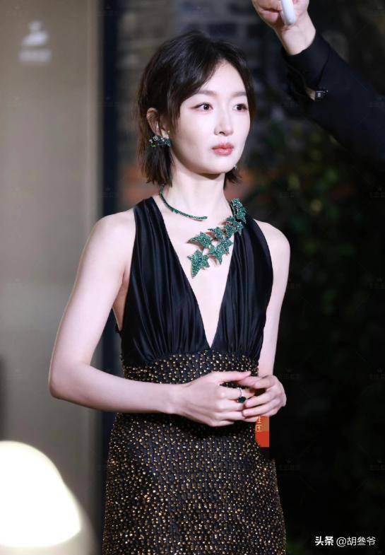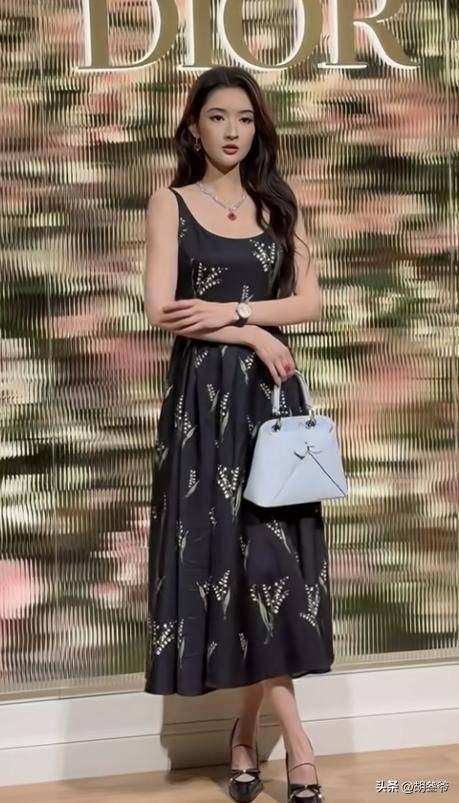 生图里看觉得她这造型有点普通,黑底白花的碎花设计稍显老气,甚至有人说有点土,和现场其他明星的造型比起来少了点惊艳感。