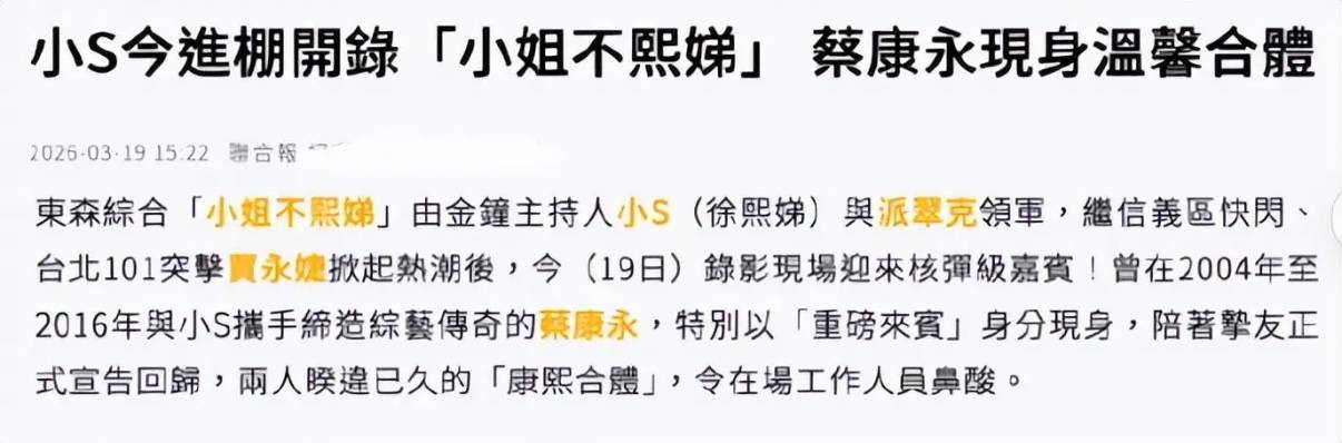 这次《小姐不熙娣》开播,蔡康永作为重量级嘉宾,也是陪着挚友小S重回舞台。久违的《康熙合体真是让人鼻酸!