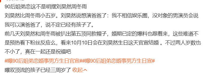 但树欲静风不止,两人的话题从恋情绯闻,直接演变到了谈婚论嫁结婚生子的程度,看来年龄都不小,爆料者都着急了,一会双顶流领证了,一会要等男方生日官宣,一会隐婚生娃了,真真假假云里雾里,大部分锁定二人,却又让其他顶流莫名其妙躺枪。