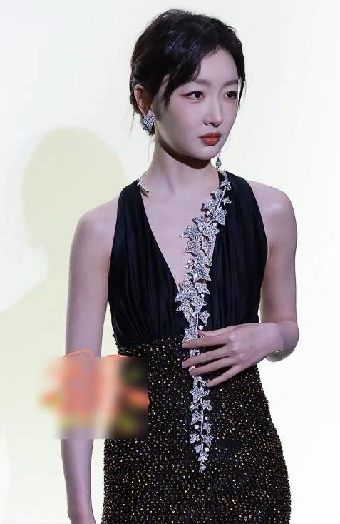 此前她的花蝴蝶高定、央视非遗晚会的“绿荷花”旗袍,都尽显东方韵味,这次她穿一身全裹式黑礼服,宛如黑天鹅,优雅大气,完美延续自身风格。