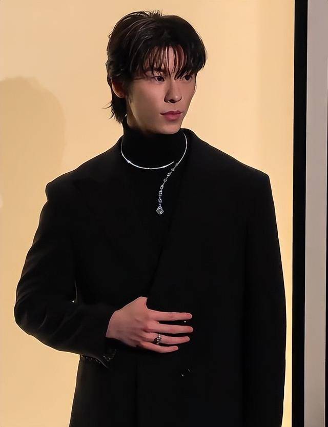 他选了一身深V黑西装,领口较低露出流畅锁骨,添了几分性感,与许光汉的简约款形成区别。