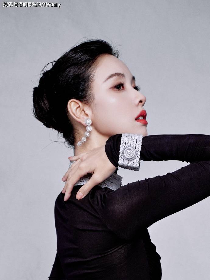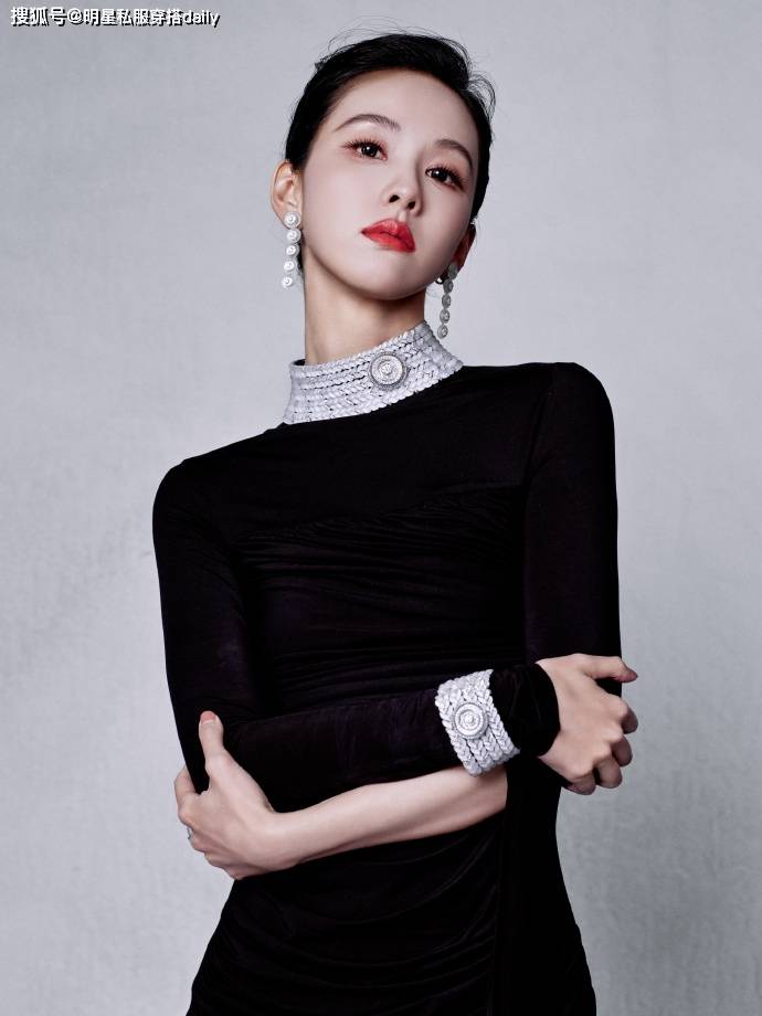 陈都灵这次把基础黑色演绎的时髦高级,离不开饰品的加持!不管是耳朵上搭配的镶钻长耳环,还是脖子上搭配的银色镶钻宽项链,还是手腕上佩戴的银色手镯,无不让这身黑裙有了色彩感!