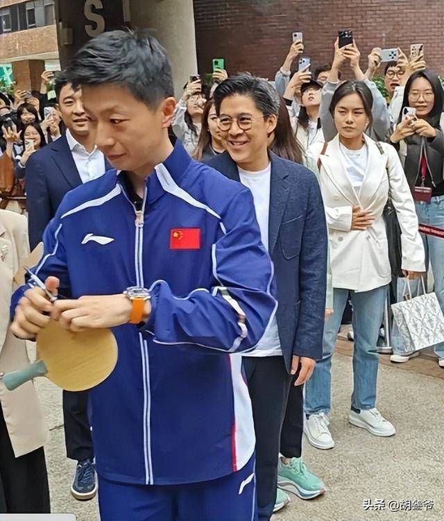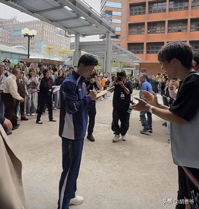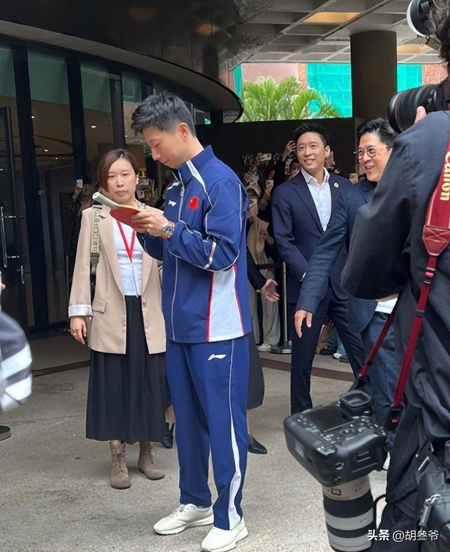 不打比赛的日子里,龙队的精气神依旧拉满,路上遇到求签名的学生,他也笑着接过球拍签字,没有一点奥运冠军的架子。