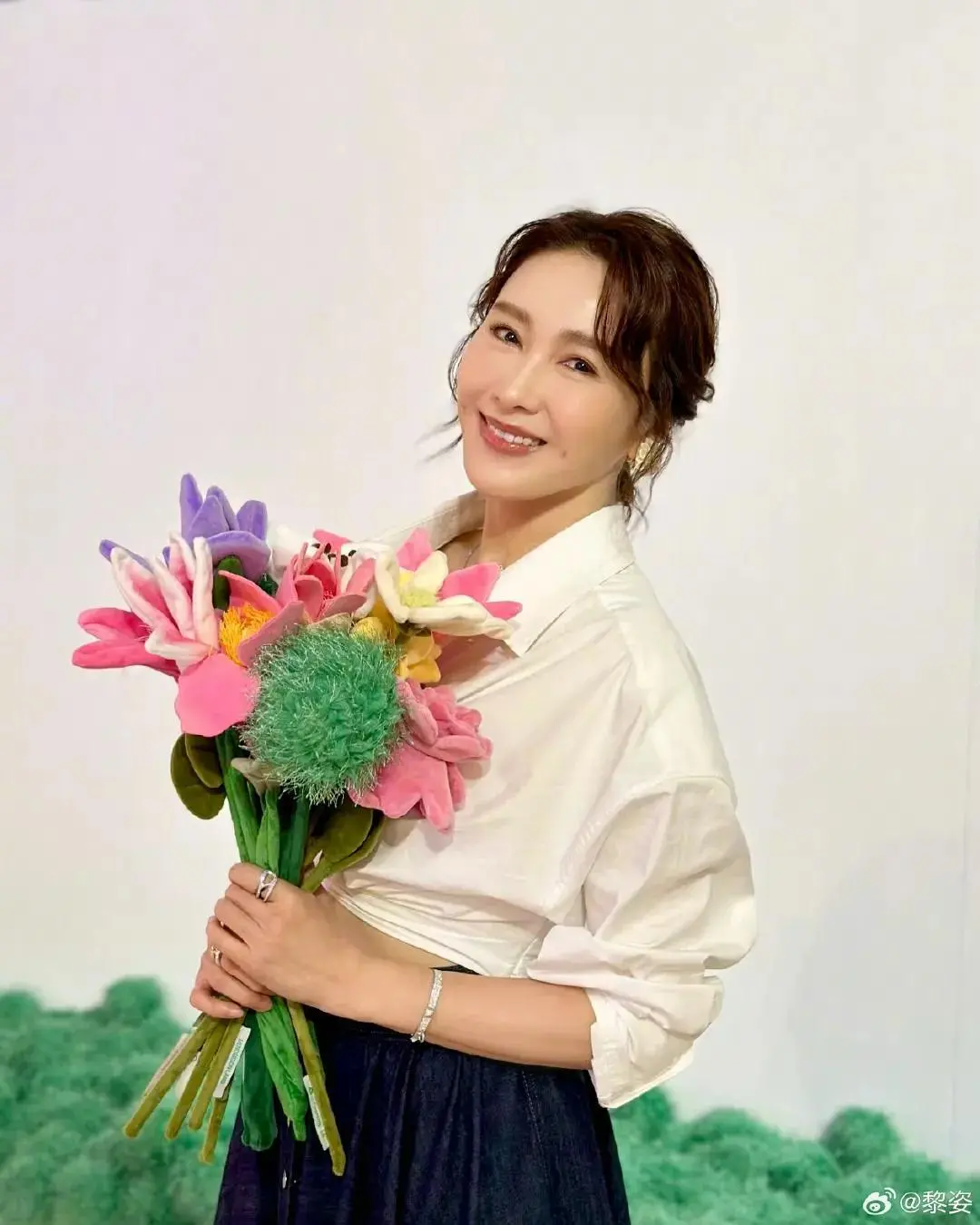 黎姿似乎也很喜欢这次的绒花艺术展,在现场拍了不少美照,脸上洋溢着甜甜的笑容,看起来超美。