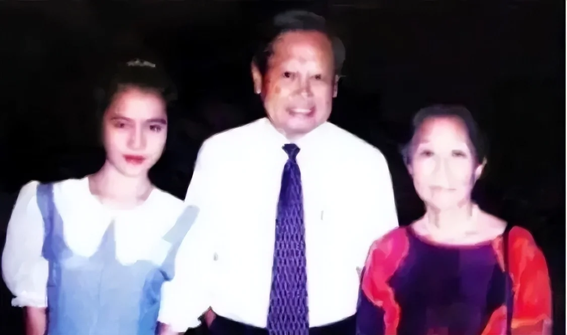 那时的她青涩稚嫩,还是学生模样,而她身边的杨老妻子则已经白发苍苍,人生已入暮年。