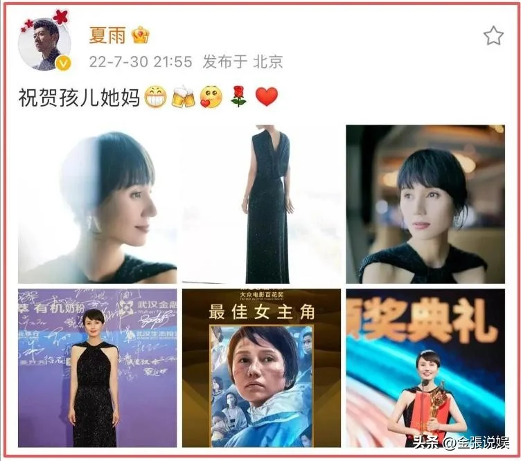 夏雨在得知消息之后,第一时间公开表达了祝贺。